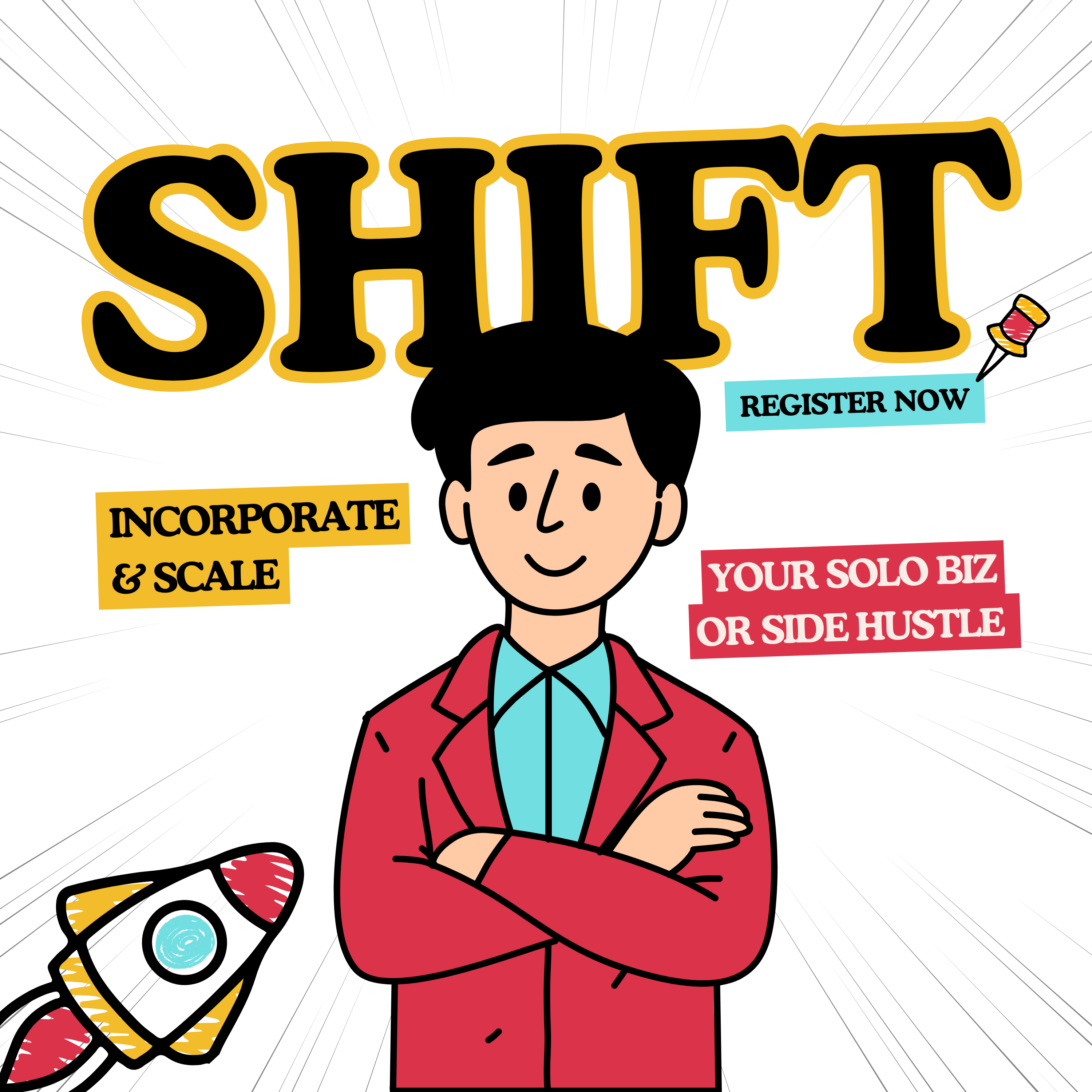 Whether you’re starting from scratch or struggling to grow your business with clarity, SHIFT gives you the exact tools, frameworks, and mindset to incorporate, streamline, and scale your business, without burning out.